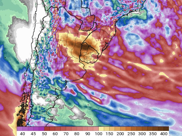 Lluvias en la 1era semana de Abril podrían ser excesivas. Proyecciones superiores a 300 mm al Norte del Rio Negro